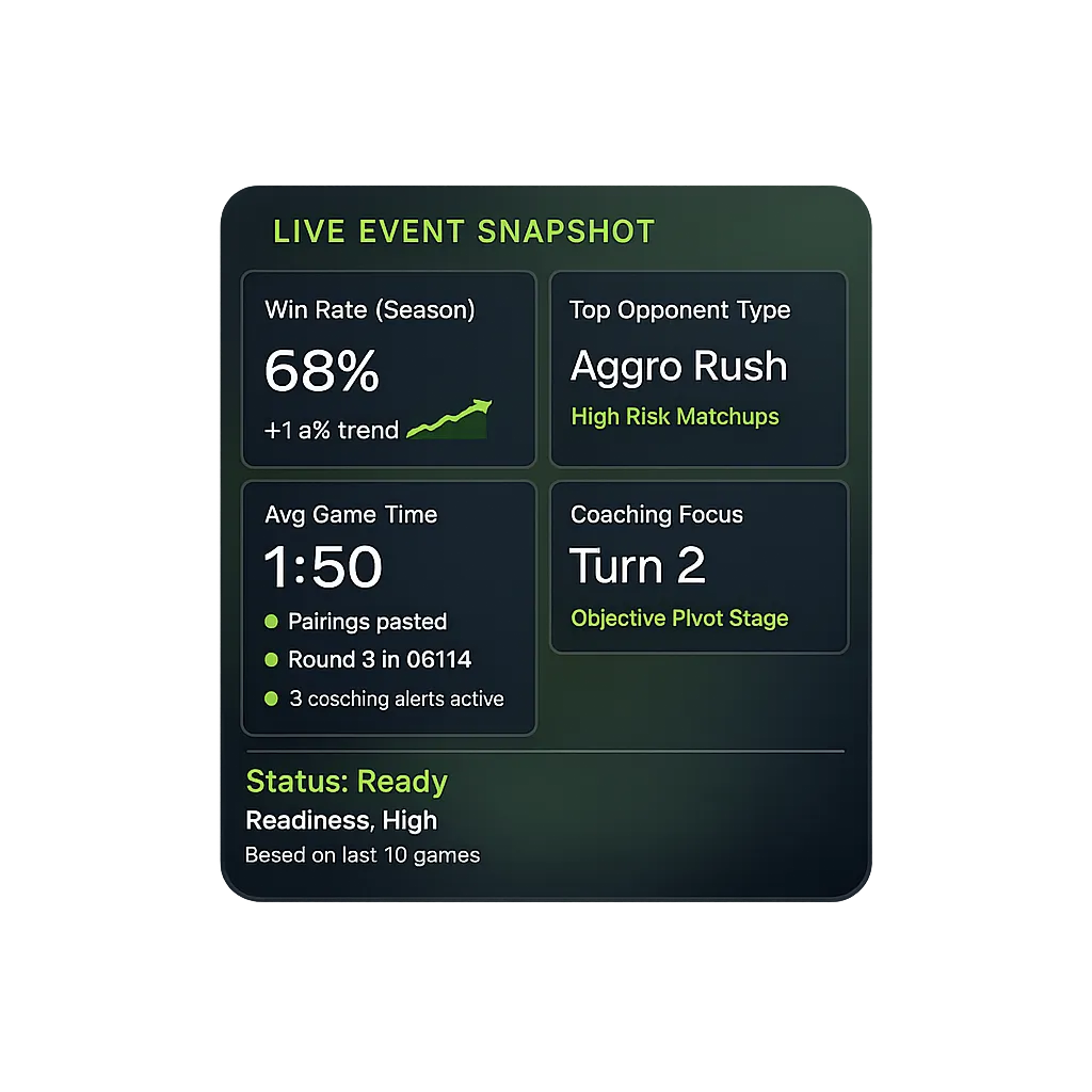 Grimdark Gaming blends your actual game data with targeted coaching workflows. Instead of "generic faction guides," you get practice plans, reviews, and decision drills tuned to the exact pairings you keep losing.